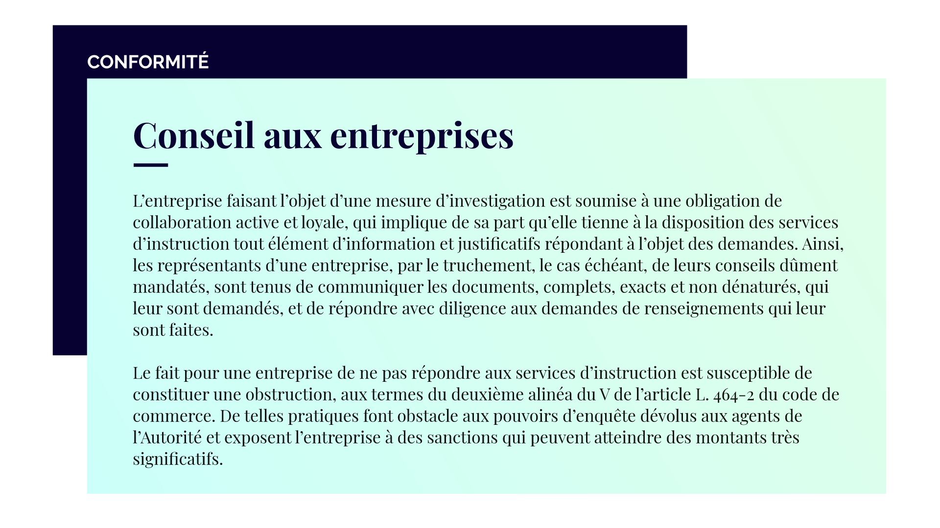 Ce refus de réponse délibéré et répété est grave. Une entreprise qui se sait visée par une enquête de l’Autorité a une obligation de collaboration active et loyale, et est tenue de répondre de manière diligente, complète et exacte à toute demande d’informations.